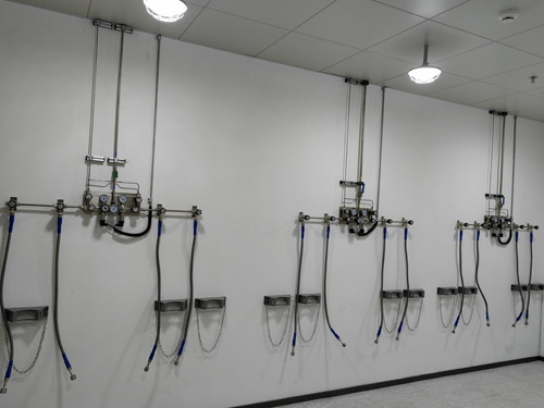 2.4N氦氣管理者線通過了OD3/8”(6.35mm)的供水管線,0.5Mpa壓力差齷齪量多達8M3/鐘頭,非常充分考慮基本用氣標準,支線通過了OD1/4”(6.35mm)的供水管線。用點焊三通接頭分成支路來對專用設備通過供氧。